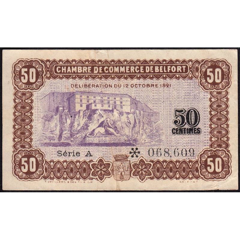 • Belfort - Pirot 23-56 - 50 centimes - Série A - 12/10/1921 - Etat : TTB