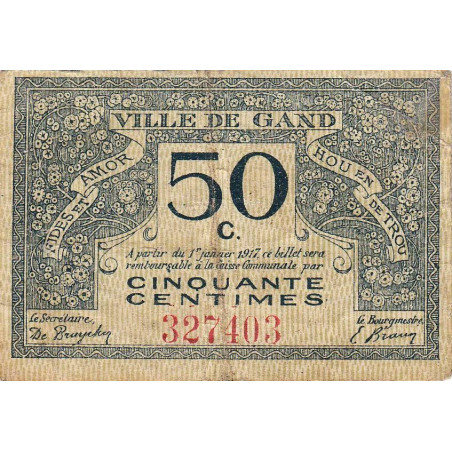 Belgique - Gand - GE67 - 50 centimes - 01/01/1917 - Etat : TTB