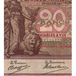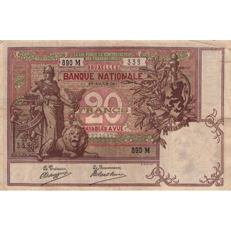 Belgique - Pick 62d - 20 francs - 01/03/1906 - Etat : TTB-