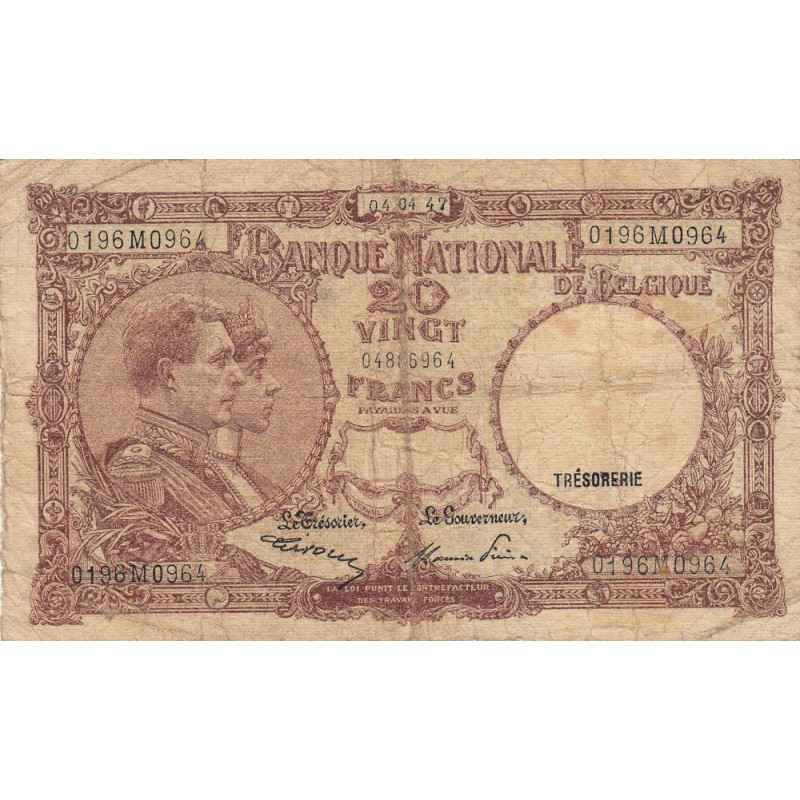 • Belgique - Pick 111_5 - 20 francs - 04/04/1947 - Etat : TB-
