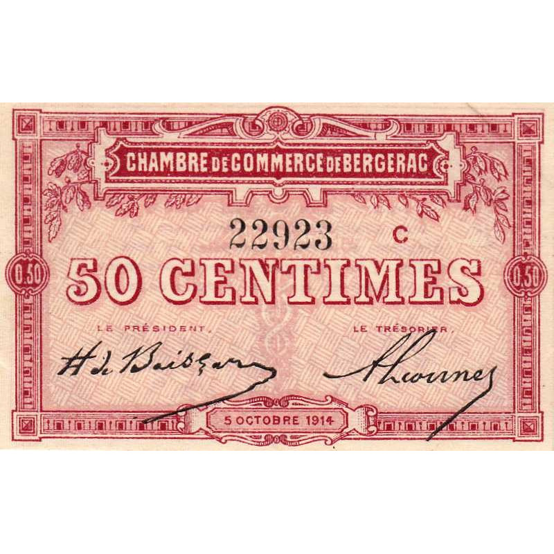 • Bergerac - Pirot 24-8 variété - 50 centimes - Série C - 05/10/1914 - Etat : SPL