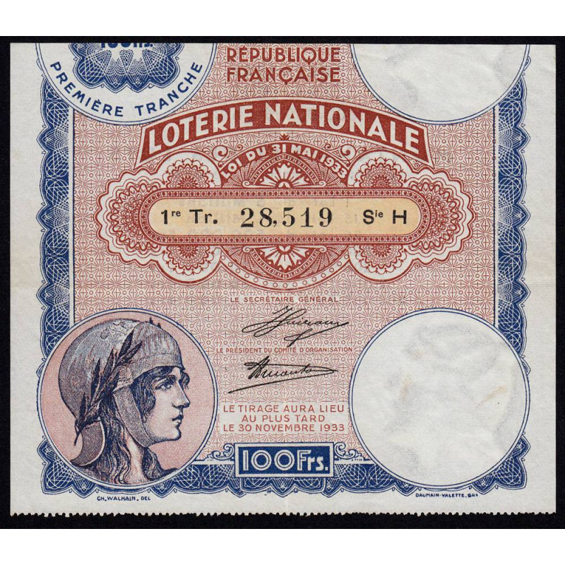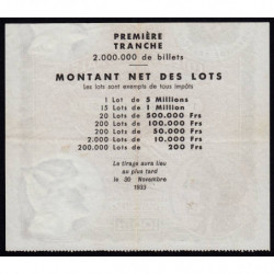 1933 - Loterie Nationale - 1e tranche - Etat : TTB