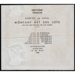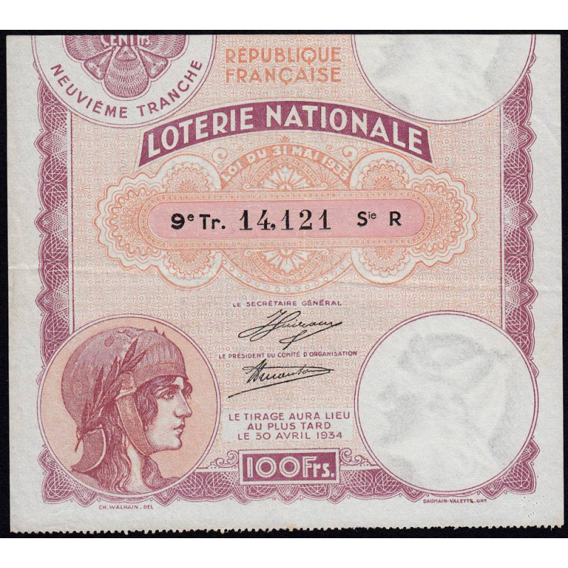 1933 - Loterie Nationale - 9e tranche - Etat : TTB