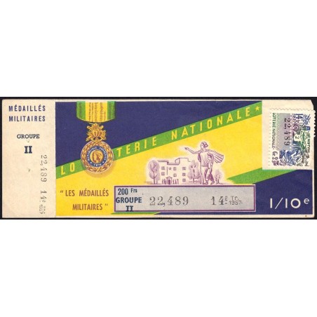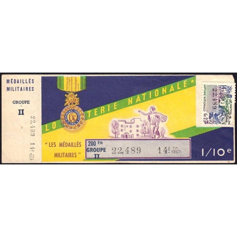 • 1957 - Loterie Nationale - 14e tranche Gr. II - 1/10ème - Médaillés Militaires - Etat : TTB