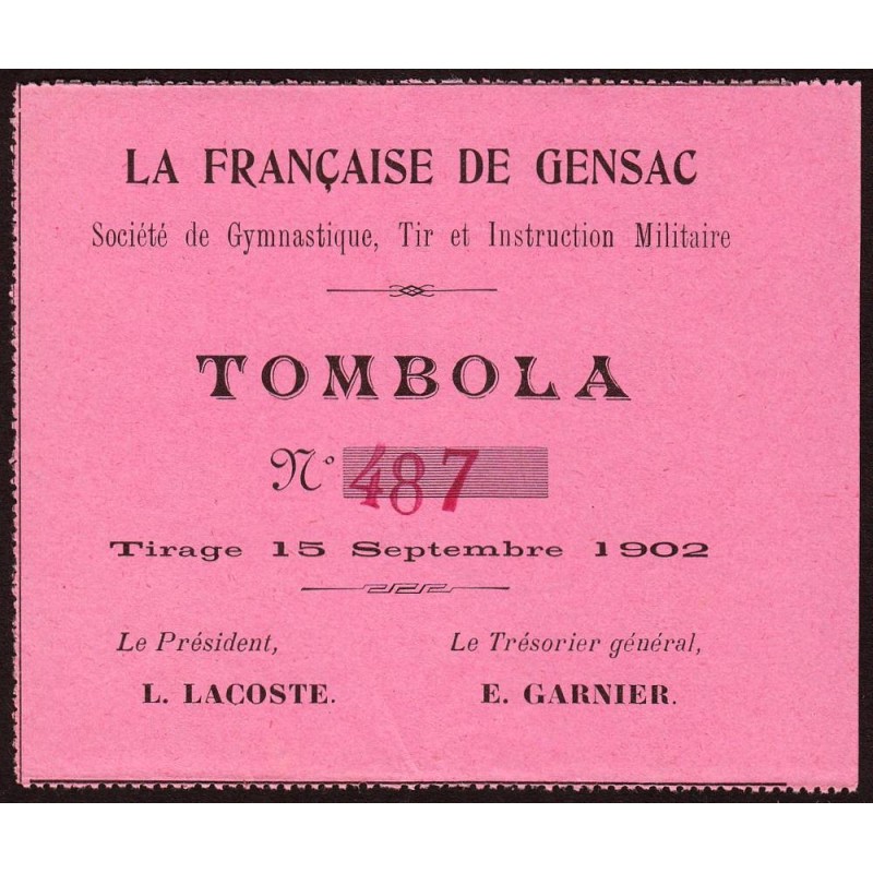 1902 - Gensac - Tombola - La Française de Gensac - SUP à SUP+