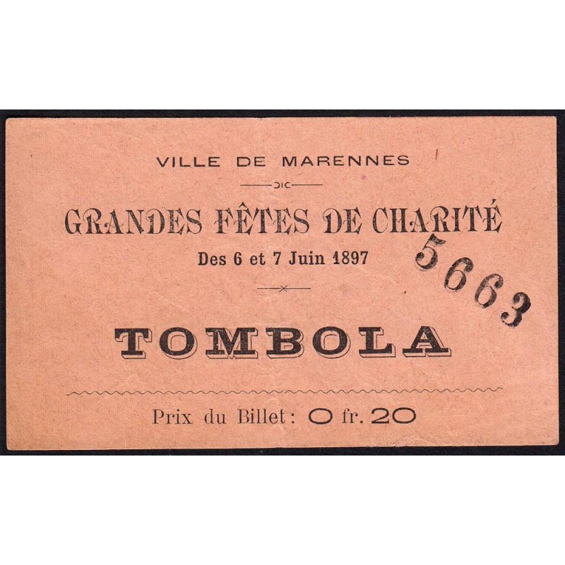 • 1897 - Marennes - Tombola - Fête de Charité - 0,20 franc - TTB