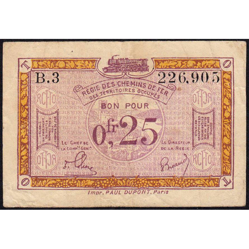 Allemagne - R.C.F.T.O. - Pirot 135-3 - Série B.3 - 25 centimes - 1923 - Etat : TB