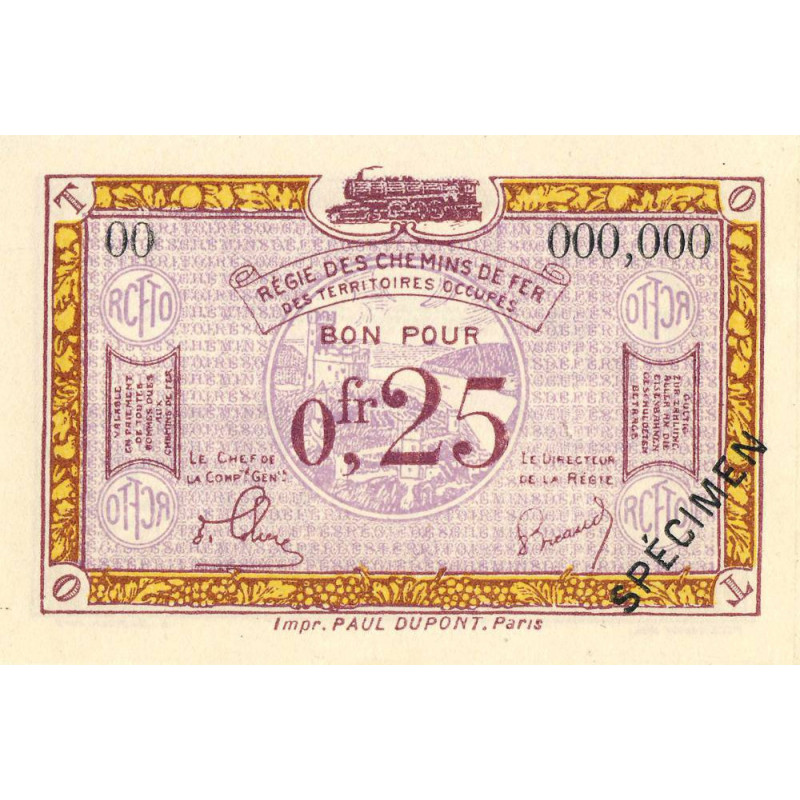 Allemagne - R.C.F.T.O. - Pirot 135-3 - Spécimen - 25 centimes - 1923 - Etat : NEUF