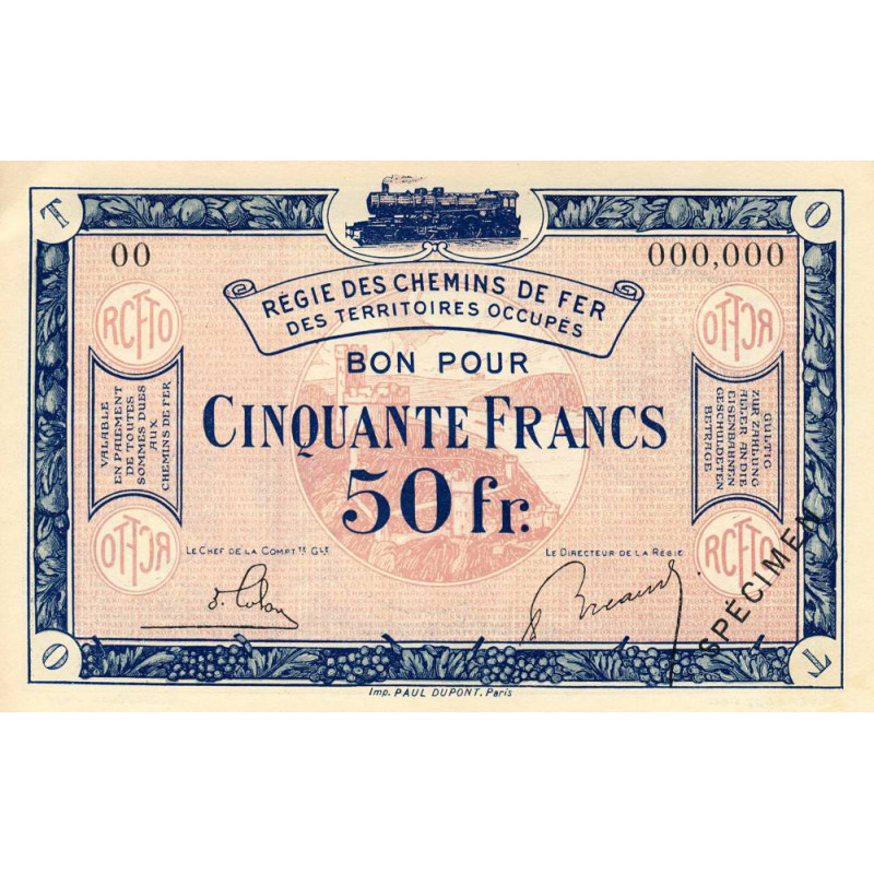 Allemagne - R.C.F.T.O. - Pirot 135-9 - Spécimen - 50 francs - 1923 - Etat : NEUF