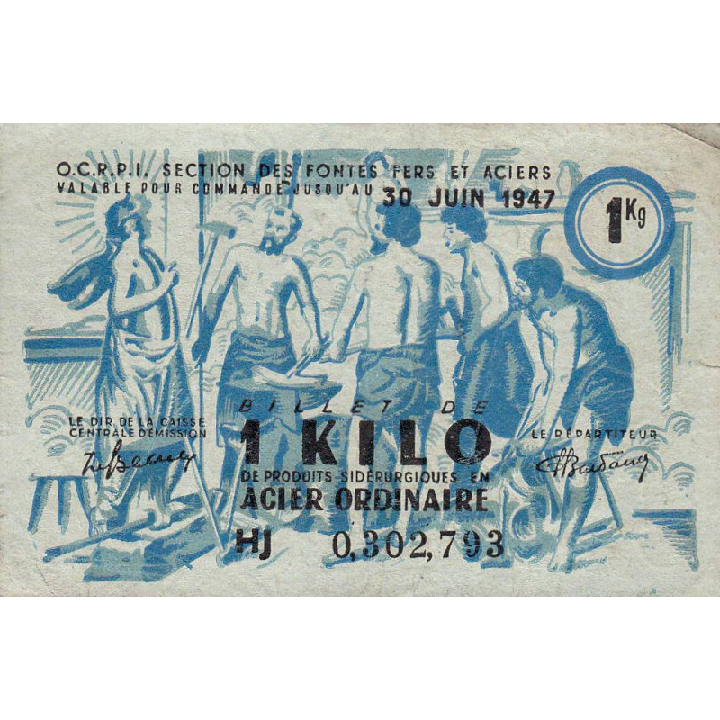 • 1 kg acier ordinaire - 30/06/1947 - Endossé dans l'Aveyron (12) - Série HJ - Etat : TTB