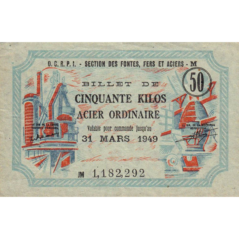 50 kg acier ordinaire - 31/03/1949 - Endossé à Guéret (23) - Série JM - Etat : SUP
