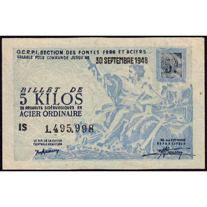 5 kg acier ordinaire - 30/09/1948 - Endossé - Série IS - Etat : SUP+