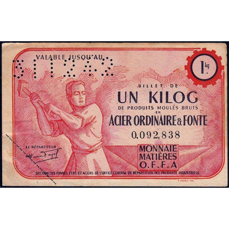 1 kg acier ordinaire et fonte - 31/12/1942 - Endossé à Courbevoie (92) - Sans série - Etat : TTB+