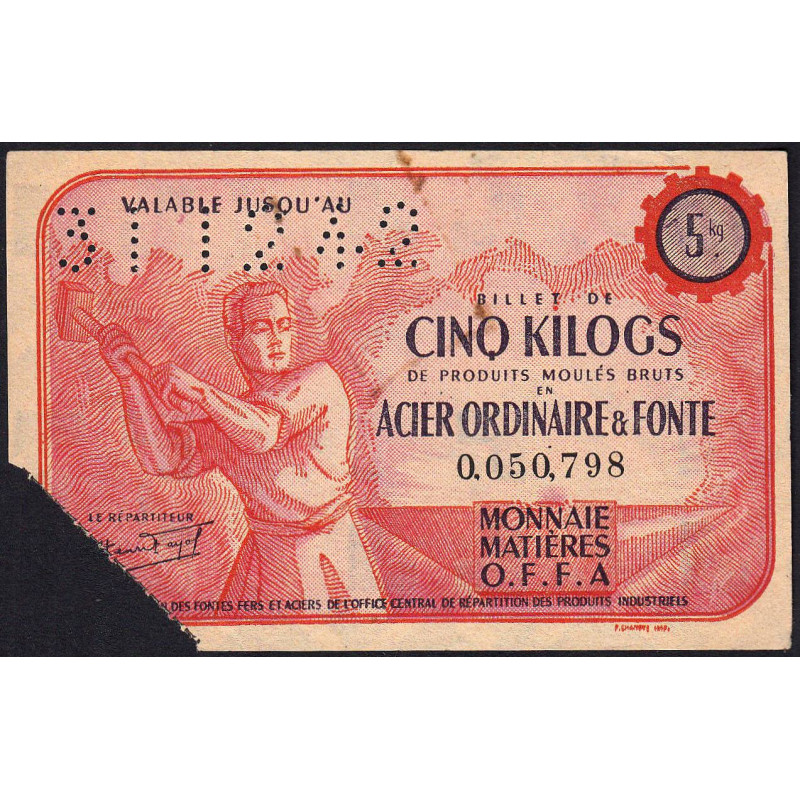 5 kg acier ordinaire et fonte - 31/12/1942 - Endossé à Paris (75) - Sans série - Etat : SUP