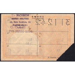 • Billet endossé à Paris (75) : Cachet de A. ROBIN Graveur Sculpteur