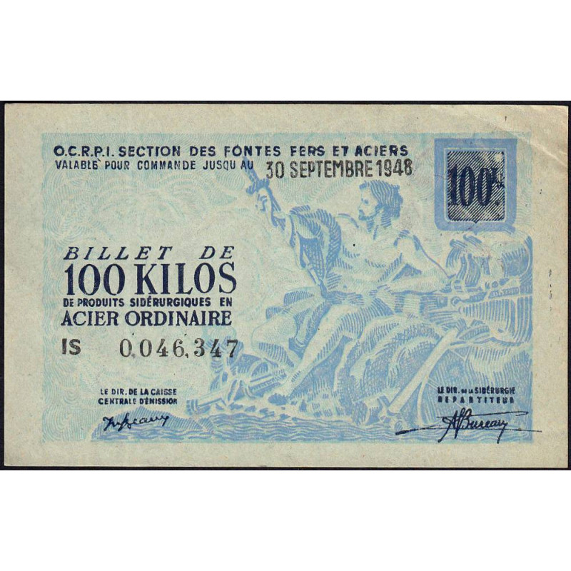100 kg acier ordinaire - 30/09/1948 - Endossé à Saint-Etienne (42) - Série IS - Etat : SUP