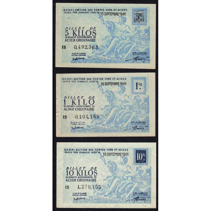 • Lot 1 kg, 5 kg, 10 kg acier ordinaire - 30/09/1948 - Non endossé - Série IS
