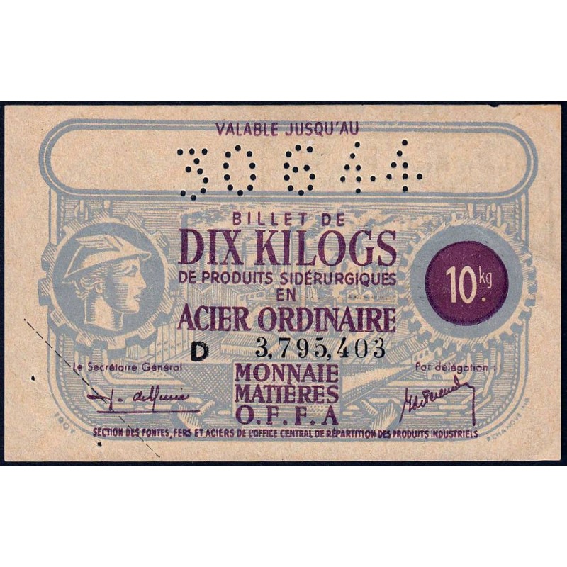 10 kg acier ordinaire - 30/06/1944 - Endossé à Courbevoie (92) - Série D - Etat : SUP