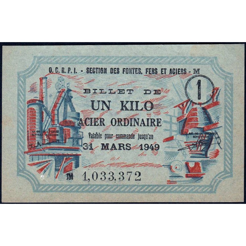 • 1 kg acier ordinaire - 31/03/1949 - Non endossé - Série JM - Etat : SUP