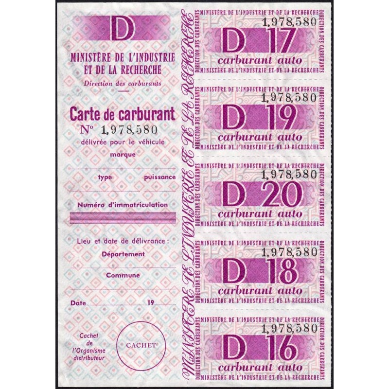 Bloc de 5 billets + talon de la carte de carburant