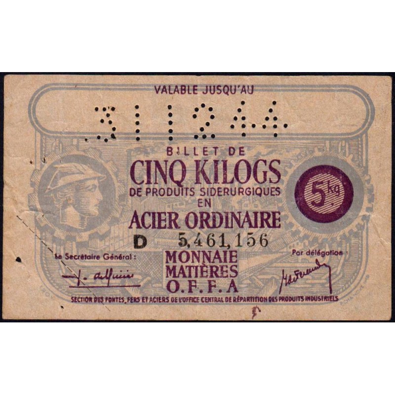 • 5 kg acier ordinaire - 31/12/1944 - Non endossé - Série D - Etat : TTB