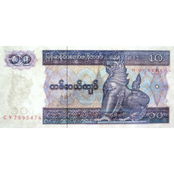 • Myanmar - Pick 71b - 10 kyats - Série CV - 1997 - Etat : NEUF