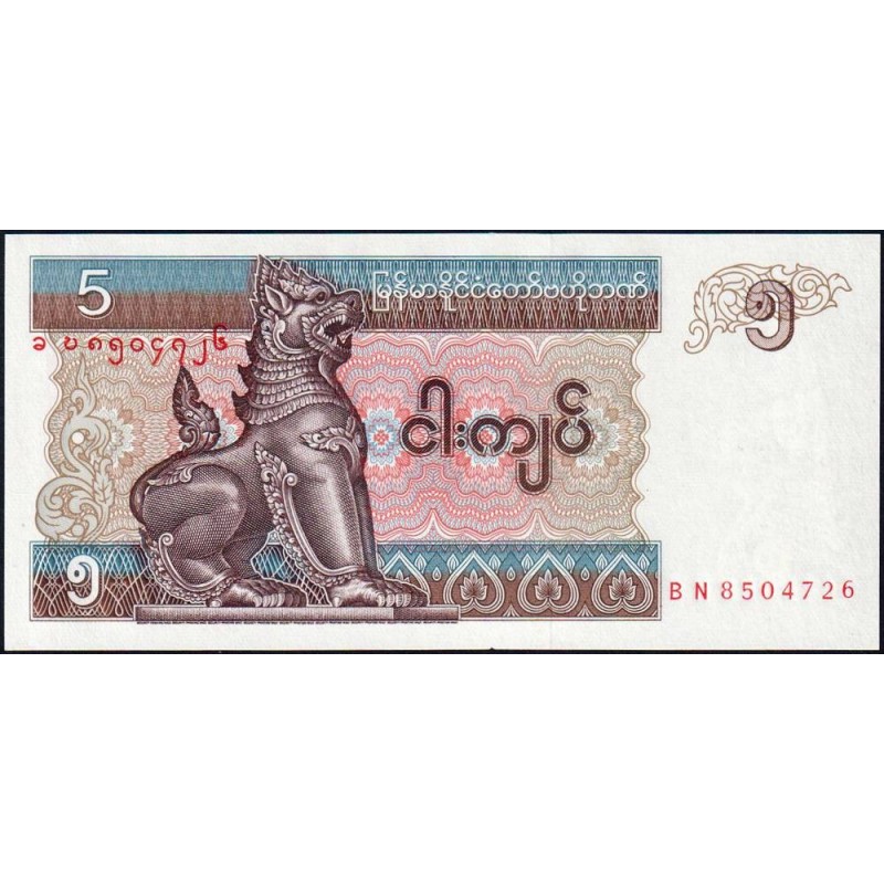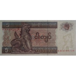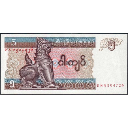 Myanmar - Pick 70b - 5 kyats - Série BN - 1997 - Etat : NEUF