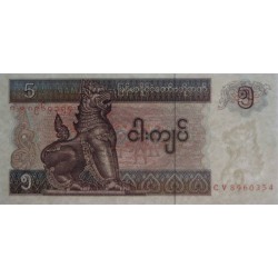 • Myanmar - Pick 70b - 5 kyats - Série CV - 1997 - Etat : NEUF
