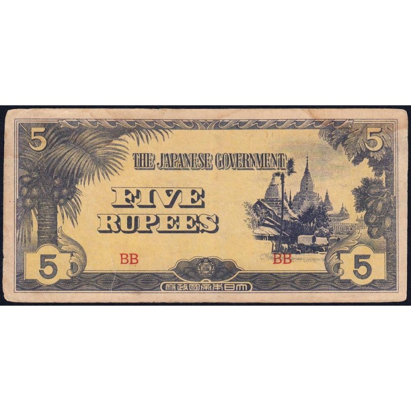Avers : Cocotier avec ses fruits à gauche, papayer avec ses fruits à droite, temple bouddhiste de l'Ananda à Bagan