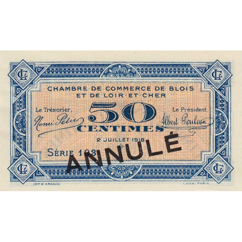 • Blois (Loir-et-Cher) - Pirot 28-10 - 50 centimes - 02/07/1918 - Annulé - Etat : SUP+