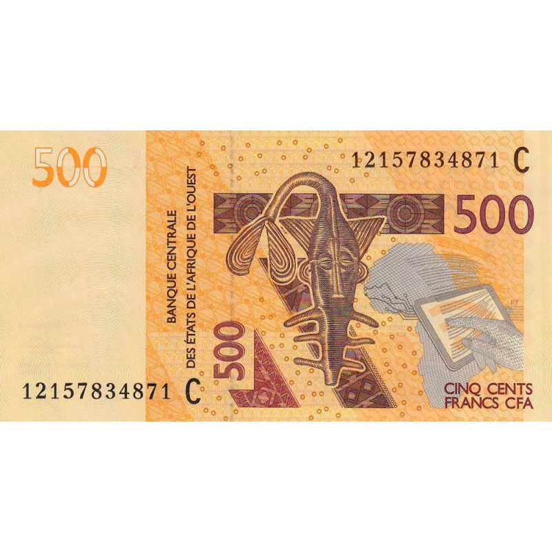 Avers : Logo de la BCEAO (poisson-scie stylisé), technologies de l'information et de la communication (tablette, bits de données)