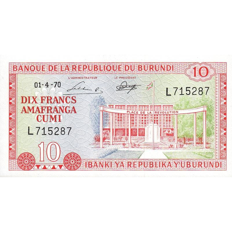 Revers : Texte en français et en kirundi devant une forme en guillochis