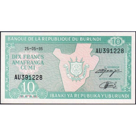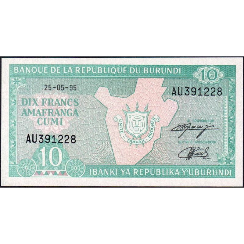 Burundi - Pick 33c - 10 francs - Série AU - 25/05/1995 - Etat : NEUF