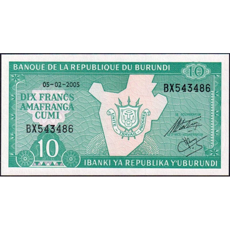 • Burundi - Pick 33e_1 - 10 francs - Série BX - 05/02/2005 - Etat : NEUF