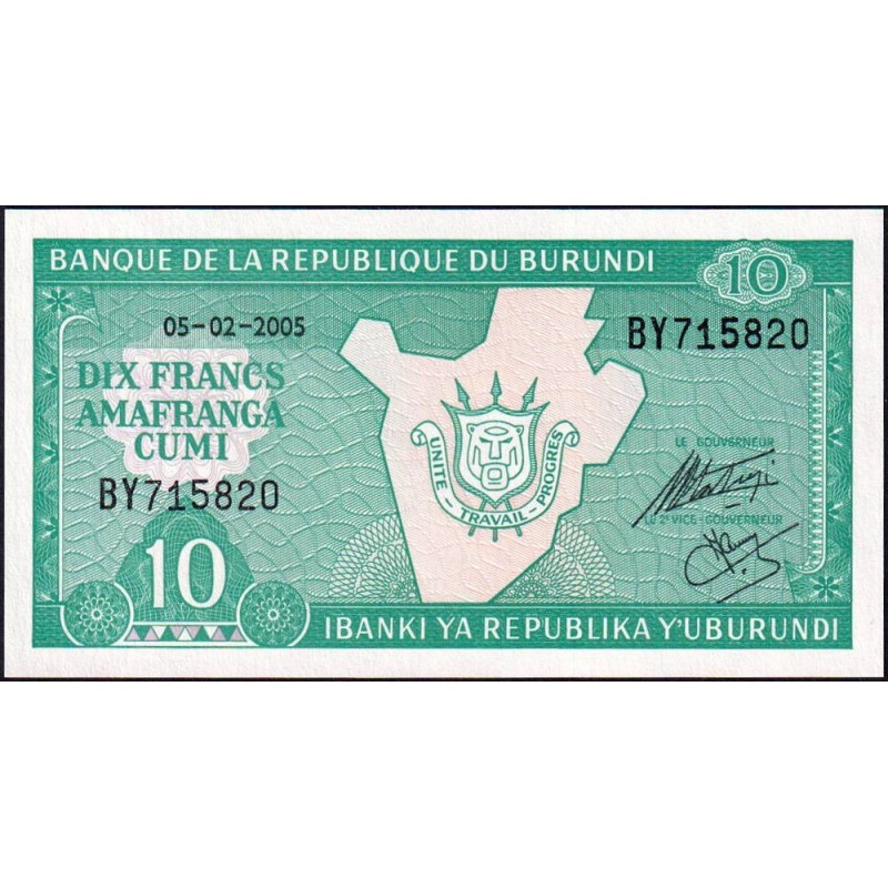 • Burundi - Pick 33e_1 - 10 francs - Série BY - 05/02/2005 - Etat : NEUF