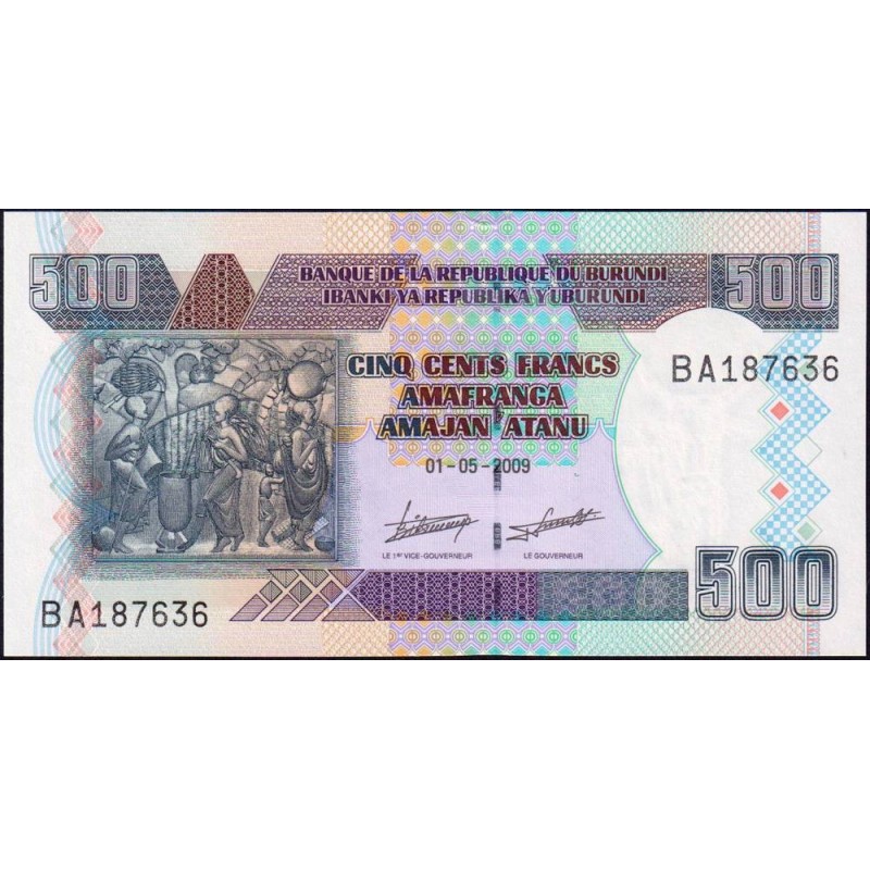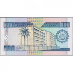 Revers : Bâtiment du siège social de la banque de la République du Burundi et palmier à Bujumbura, armoiries du pays