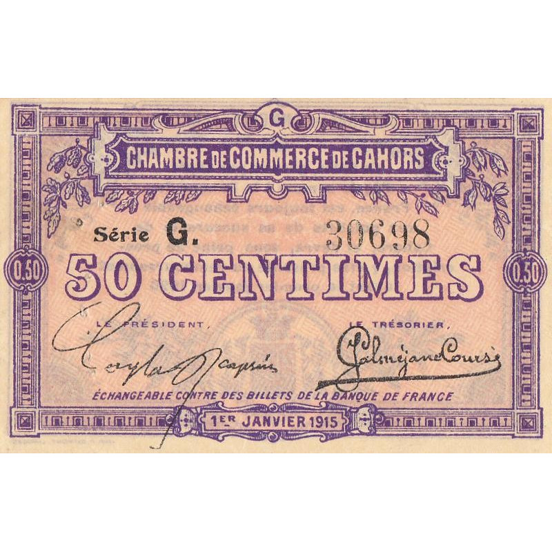 Cahors (Lot) - Pirot 35-12 - 50 centimes - Série G. - 01/01/1915 - Etat : TTB+