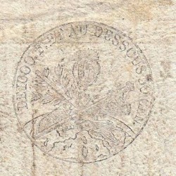 • Au revers, cachet fiscal de 50 centimes et timbre à sec fiscal de 50 centimes