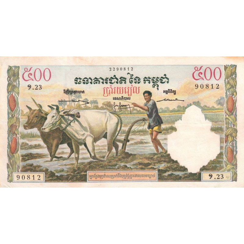 Avers : Ouvrier agricole labourant une rizière avec une charrue tirée par deux boeufs