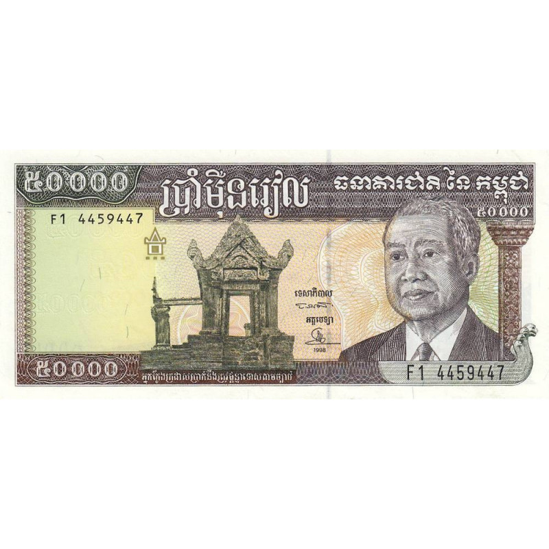 Avers : Portrait de Norodom Sihanouk (1922-2012) roi du Cambodge de 1993 à 2004, porte du temple de Preah Vihear