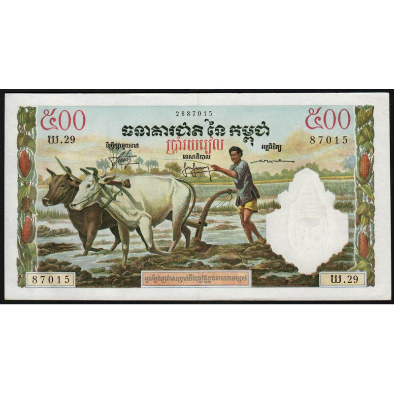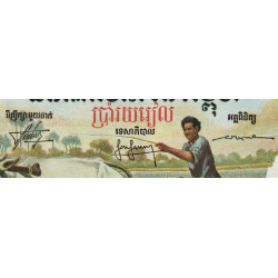 Avers : Ouvrier agricole labourant une rizière avec une charrue tirée par deux boeufs