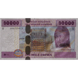 Avers : Bâtiment de la BEAC à Yaoundé, portrait d'une femme coiffée de tresses traditionnelles
