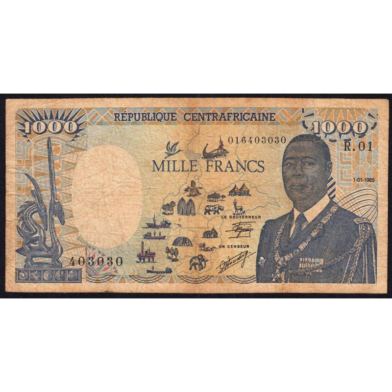 Avers : Statuette animalière en bois sculpté, carte des Etats de l'Afrique Centrale, portrait de André Kolingba (1936-2010) président de la république de 1986 à 1993