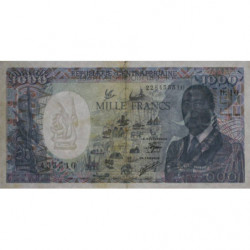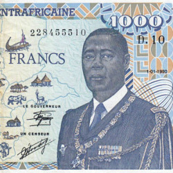 Avers : Statuette animalière en bois sculpté, carte des Etats de l'Afrique Centrale, portrait de André Kolingba (1936-2010) président de la république de 1986 à 1993