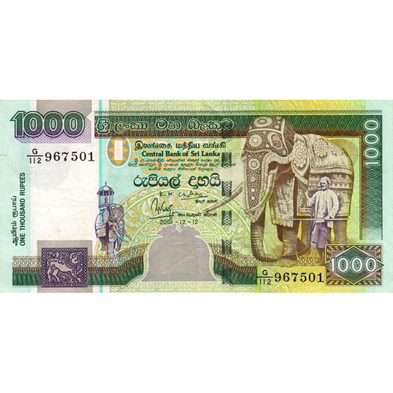 Avers : Eléphant transportant la relique lors de la fête de la dent (Esala Perahera) à Kandy, éléphant de cérémonie avec son cornac
