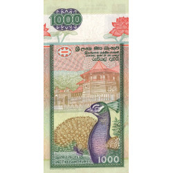 Revers : Fleurs de lotus, bâtiment octogonal du temple de la relique de la dent sacrée de Bouddha à Kandy, deux paons
