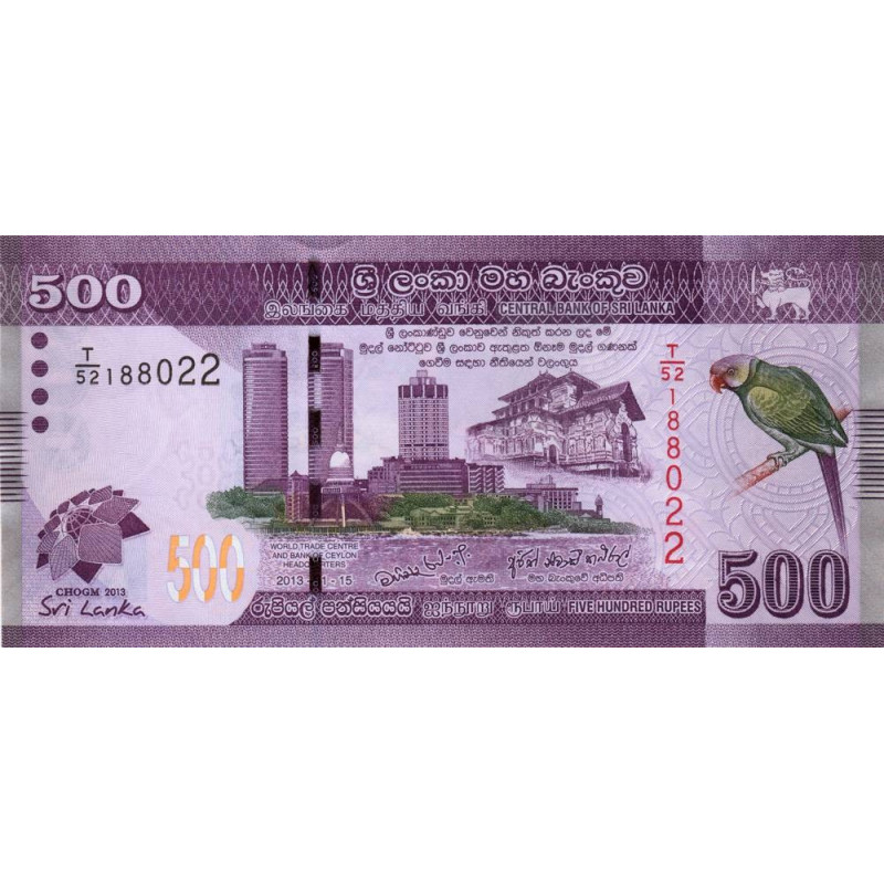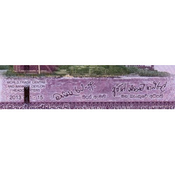 Avers : Papillon royal indigo (tajuria arida), bâtiments du World Trade Center et du siège de la Banque du Sri Lanka à Columbo, oiseau perruche de Layard (psittacula calthropae)