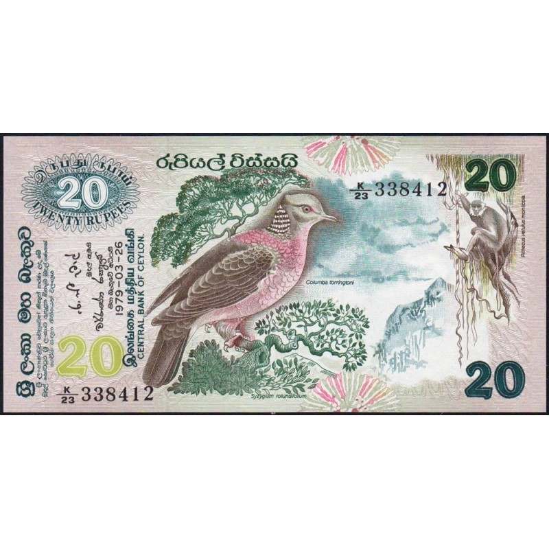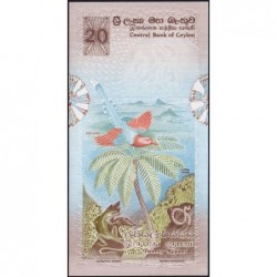 Revers : Oiseau kitta ornata (pirolle de Ceylan) survolant un cyathea sinuata (fougères arborescentes), serpent aspidura trachyprocta, saurien ceratophora stoddarti