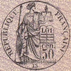 Cachet noir à l'avers : RÉPUBLIQUE FRANÇAISE cen. 50