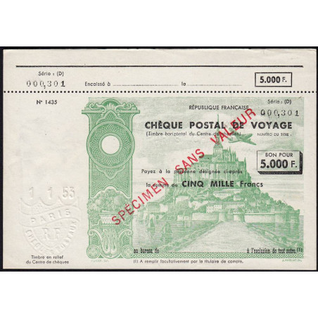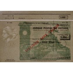 Chèque postal de voyage - 5000 francs - 1953 - Spécimen - Etat : SUP+